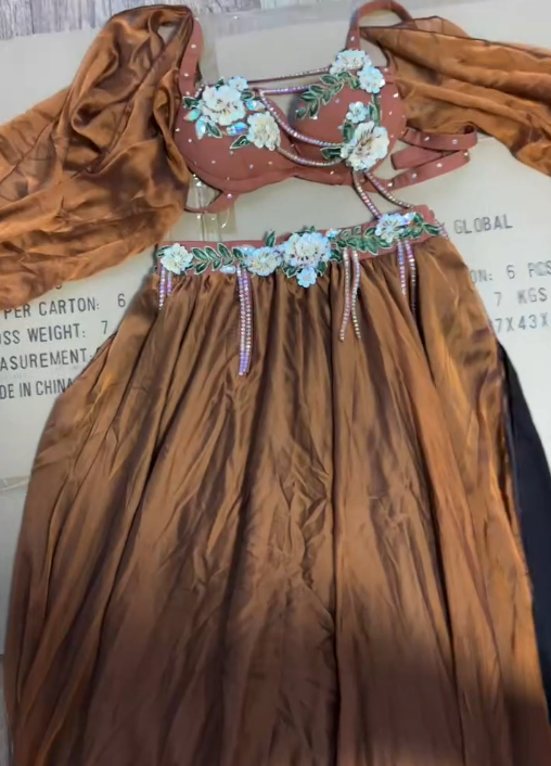 ブラとベルトの2点セットはスカートとの素材は異なりますので、茶色になりますが、色差がありますので、