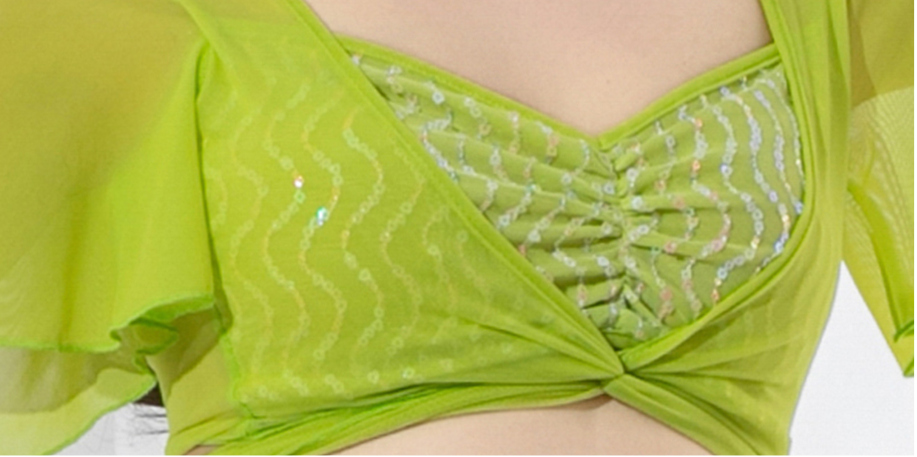 ピース付きメッシュ生地+シフォン